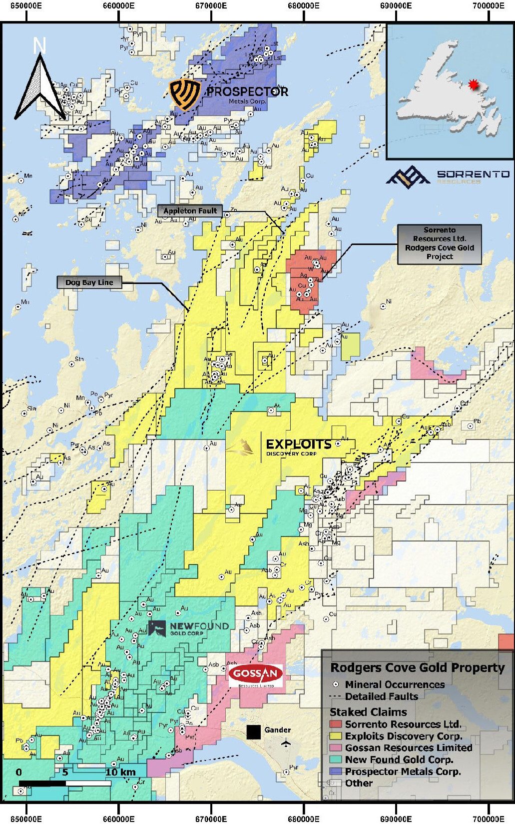 These developments mark a milestone expansion for Sorrento as the areas at the Rodgers Cove Gold Project are located in the Central Newfoundland Gold Belt (CNGB), proximal or along major crustal-scale deformation and fault zones that are integral to the gold deposits of the CNGB.