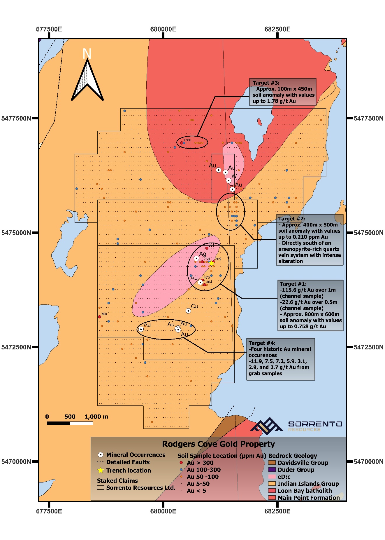 The 100%-owned Rodgers Cove Gold Project comprises 260 claims totaling 6,500 hectares in the Central Newfoundland Gold Belt (CNGB) — an area known for hosting multiple gold discoveries along major deformation zones.