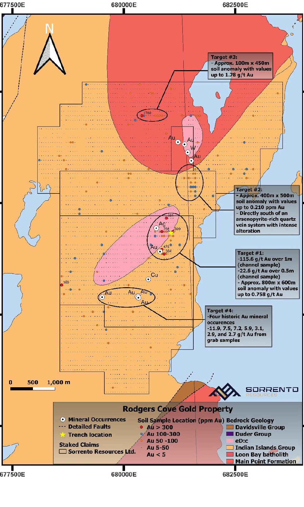 Alex Bugden, P. Geo., Director and Qualified Person of Sorrento Resources Ltd., commented: “This is a tremendous acquisition for Sorrento Resources. Since the start of 2025, we have worked diligently to acquire the Rodgers Cove Gold Project. To see it completed is an exciting milestone for the company. The high-grade gold in soil along with amazing channel sampling results which have never been followed up on presents a rare opportunity and we are very excited to get boots on the ground and begin exploring.”