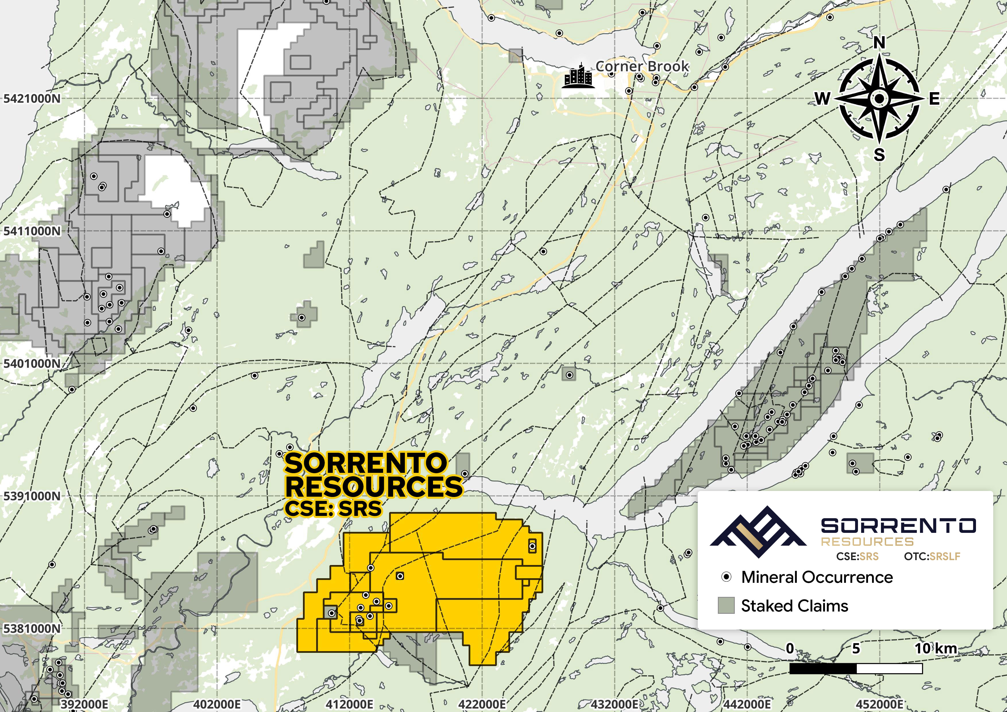 The Bottom Brook project consists of 16 mineral licences totaling ~15,150ha, located approx. 40km south of port community of Corner Brook, Newfoundland. The project is accessible through a network of secondary roads, immediately adjacent to the Trans-Canada Highway.